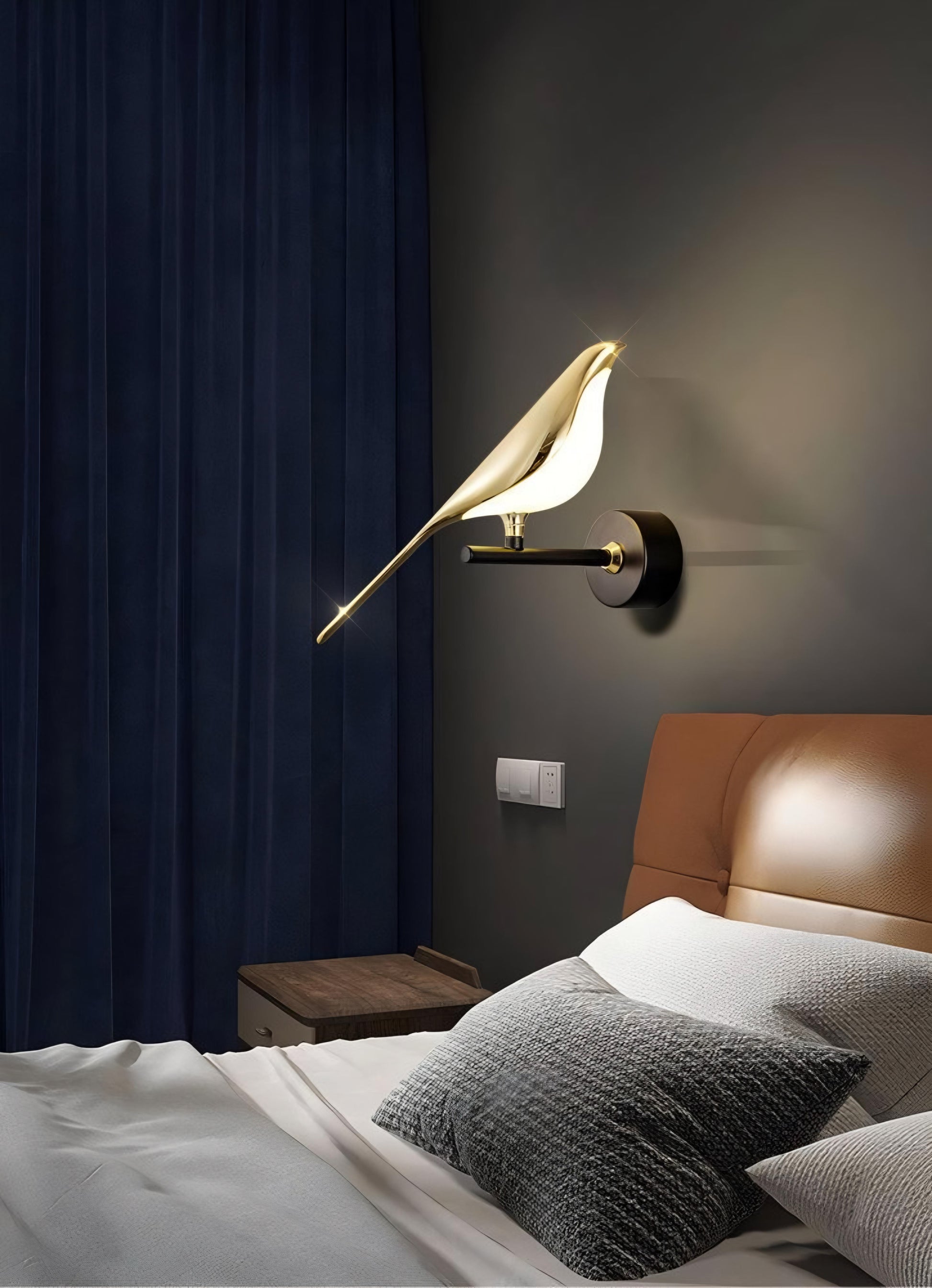 Introducing the Pajaro wall lamp, featuring a unique bird shape design. With its sleek and modern design, this lamp will add a touch of whimsy and sophistication to any wall. Illuminate your space with this one-of-a-kind lamp.